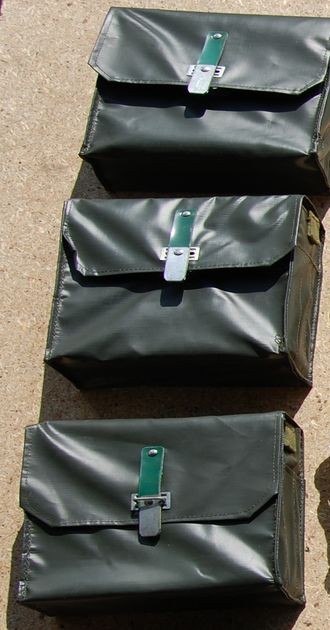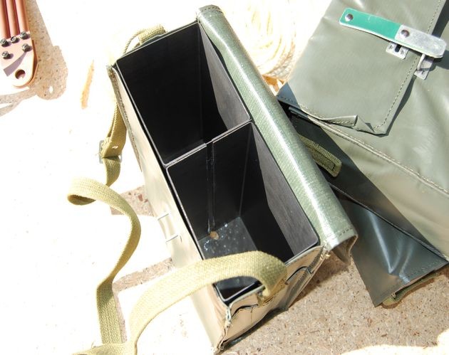 Original saper bag with a shoulder strap made of waterproof material. Inside two metal