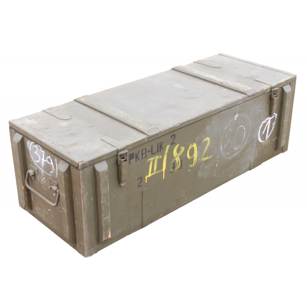 Oryginalna skrzynia wojskowa po karabinach DP z czasów II Wojny Światowej. Skrzynie pachną jeszcze bronią, każda ma swoją historię.