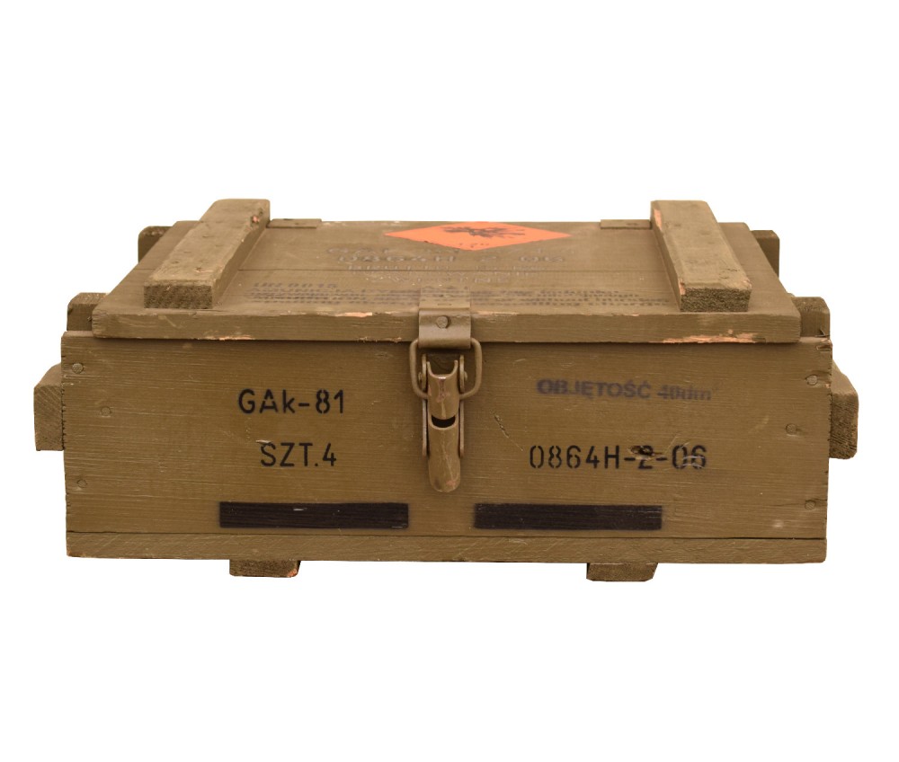 Oryginalna wojskowa skrzynia w kolorze zielonym.