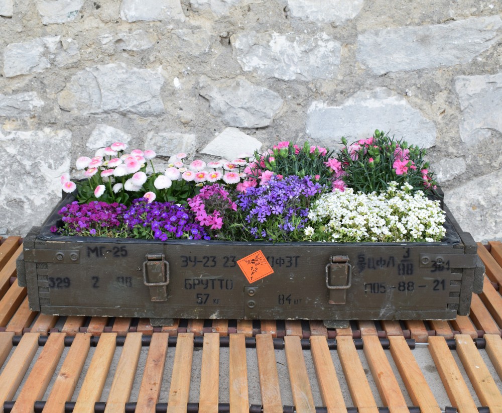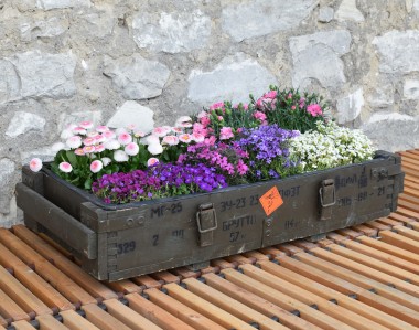 Doniczka została wykonana se skrzyni wojskowej. Dzięki temu mamy pewność, że jest wytrzymała oraz posłuży lata.
