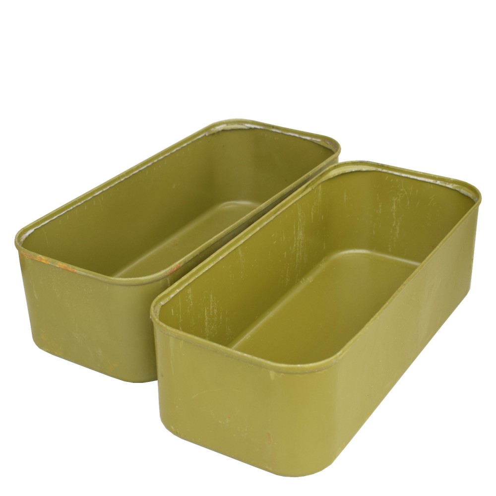 W zestawie 4 wkłady metalowe o pojemności ok. 5L każdy. Wkłady to puszki po amunicji. Mogą posiadać różne kolory oraz ślady rdzy i obtarcia.