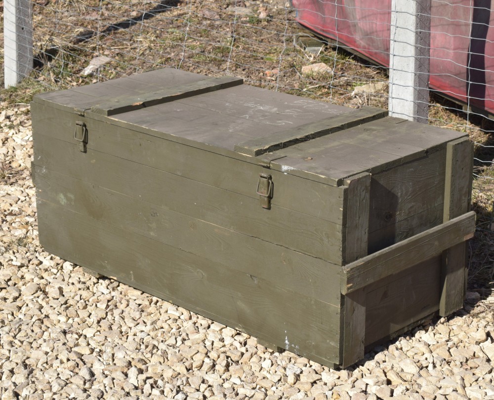 Bardzo duża i solidna wojskowa skrzynia transportowa. Skrzynie prezentują się bardzo okazale pomimo swojego wieku