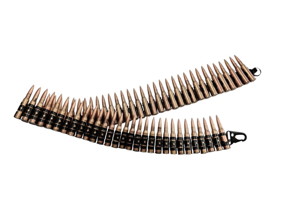 Pas składa się z oryginalnych łusek powystrzałowych, pocisków zaciśniętych na profesjonalnej matrycy oraz ogniwa.