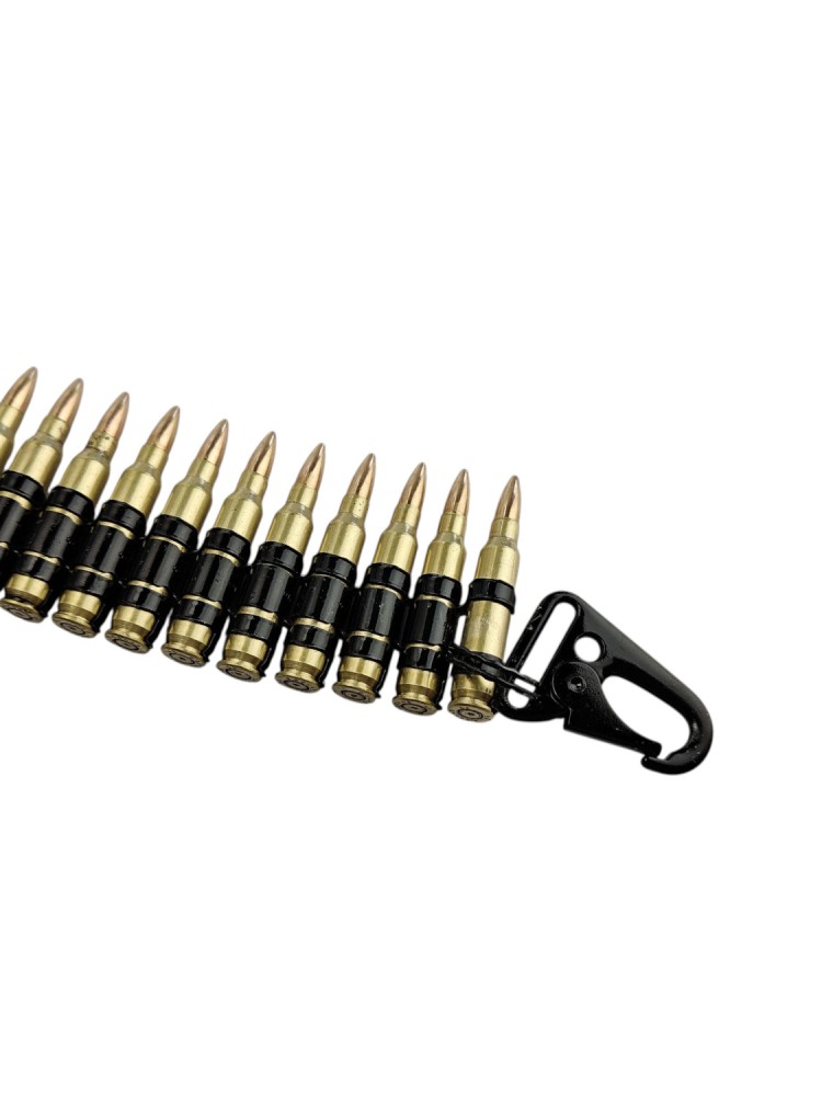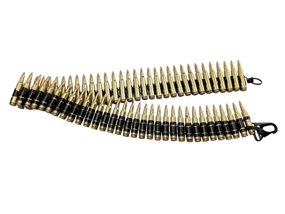 Pas składa się z oryginalnych łusek powystrzałowych, pocisków zaciśniętych na profesjonalnej matrycy oraz ogniwa.