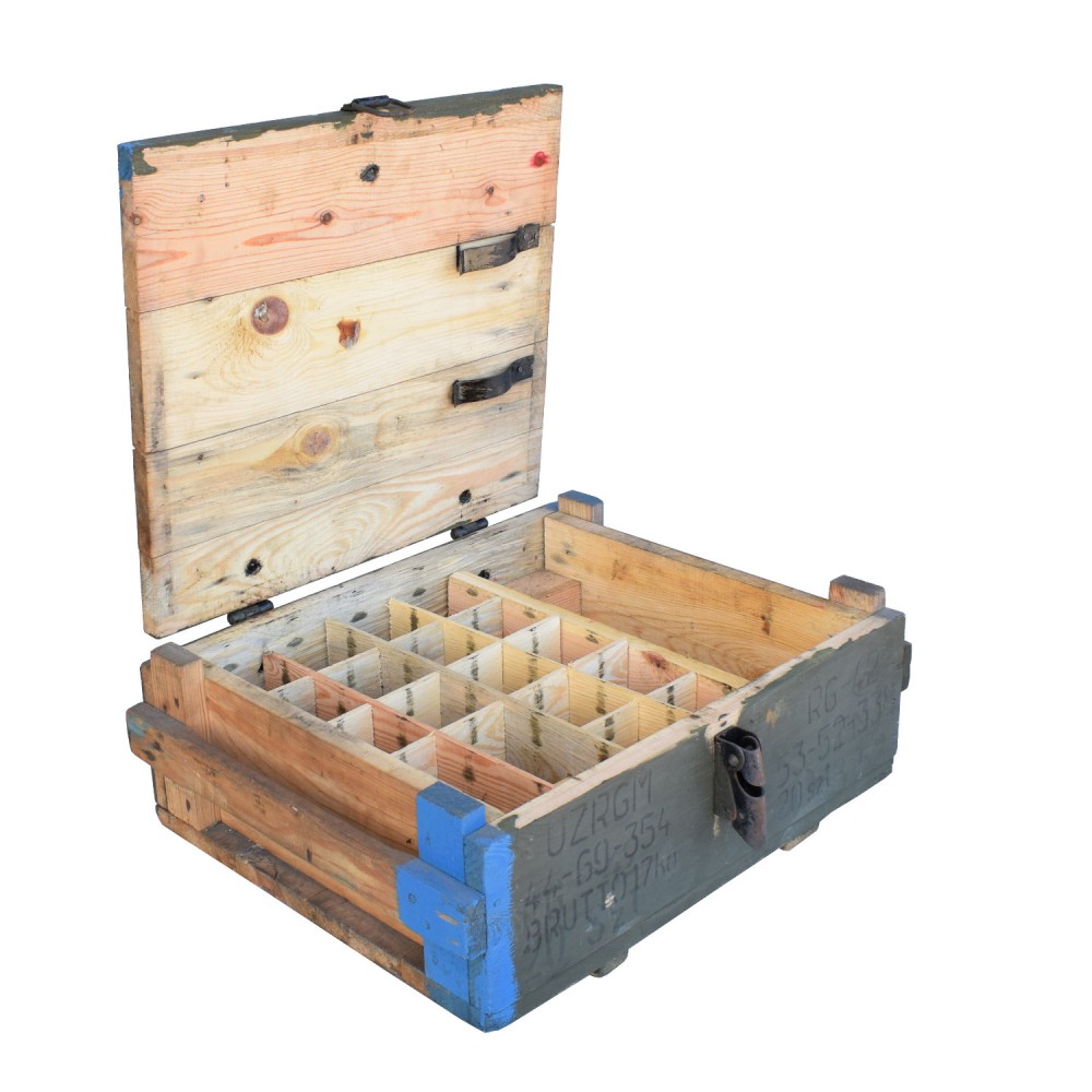 Oryginalna wojskowa skrzynia z przegródkami po ręcznych granatach RG-42.