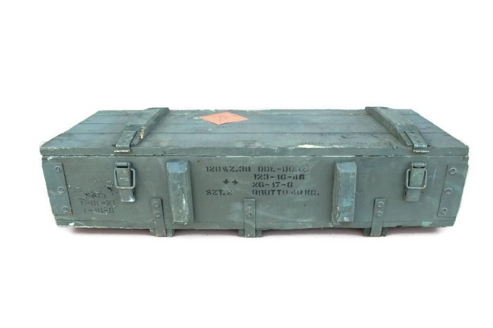 Oryginalna skrzynia wojskowa po moździerzu w kolorze zielonym.